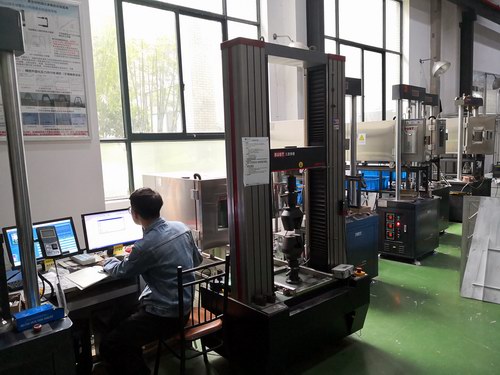 萬能試驗(yàn)機(jī),將用于在相關(guān)材料及構(gòu)件的檢測分析。圖為設(shè)備現(xiàn)場。